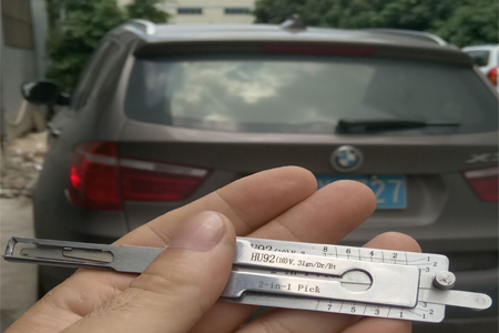 宝马汽车开锁,以HU100R新款宝马来说明二合一的开启用法,二合一工具,手法都一样,只是数据不一样。这个手感和单钩、定位开是一样的。